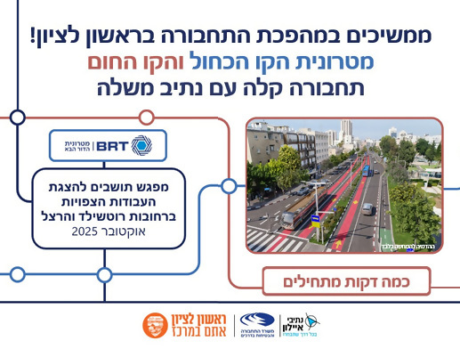 תארו לעצמכם את שגרת היומיום שלכם: בוקר שקט ללא עומסי תנועה, אתם עולים על מטרונית הקו הכחול שעוברת מרחובות, דרך נס ציונה וראשון לציון, היישר אל ליבו של אזור תל אביב. מטרונית הקו הכחול היא מערכת הסעה המונית מתקדמת וחשמלית, הכוללת רכבים גדולים ונוחים, הנוסעת בנתיב ייעודי משלה ומגיעה בתדירות גבוהה!