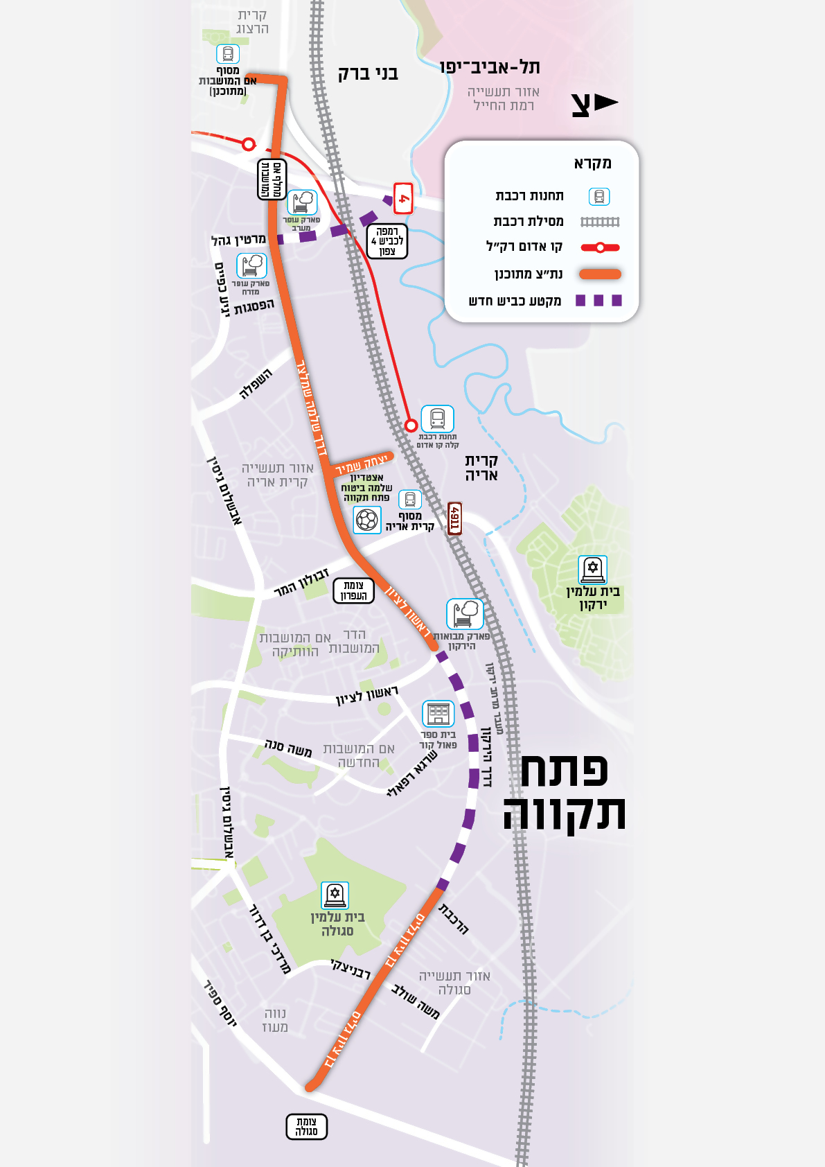 הפרויקט כולל 12 קילומטר של נתיבי תחבורה ציבורית רציפים ממזרח למערב עם שבילי אופניים דו-סטריים, תחנות אוטובוס חדשות ונגישות, וחיבור מהיר ויעיל למוקדי תעסוקה ואזורי ביקוש מרכזיים. בנוסף, הקמת חיבור תחבורתי חיוני לכביש 4, הפרדה מפלסית בצמתים מרכזיים עם שיקוע בצומת מרטין גהל, בניית גשר בצומת זבולון המר, וסלילת כביש חדש המחבר בין רחוב ראשון לציון לרחוב גליס. התכנון מבטיח קיצור זמני נסיעה, שיפור תדירות השירות, הפחתת עומסי תנועה וזיהום אוויר, וזרימה משופרת גם למשתמשי הרכב הפרטי באמצעות ההפרדה המפלסית. הכל תוך שמירה על פיתוח נופי ואיכות הסביבה, חידוש תשתיות תת-קרקעיות, הטמנת רשת החשמל בחלק מהתוואי, ותמיכה בתכניות הפיתוח העירוניות.
