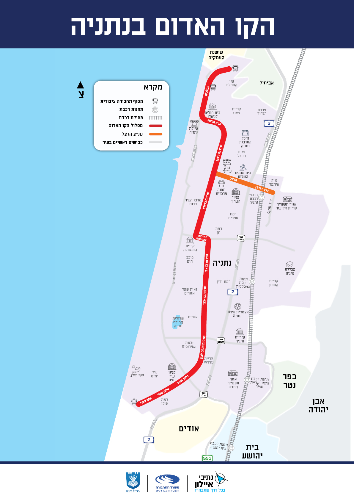 דמיינו את היום-יום שלכם, בוקר רגוע ללא פקקים, נסיעה מהירה ונוחה ברחבי נתניה – מחוף פולג, דרך רחוב הרצל והטיילת ועד לשכונות החדשות.כבר לא צריך לדמיין, הכירו את הקו האדום מערכת תחבורה חדשנית שתספק נגישות לעשרות מוקדי עניין מרכזיים בעיר וחיבוריות בין צפון העיר לדרומה. עם נתיבי העדפה ייעודיים, שבילי אופניים רציפים, תחנות אוטובוס מתקדמות ותשתיות מחודשות, הפרויקט משמש כמנוע מרכזי להתחדשות עירונית, פיתוח עירוני מתקדם וצמיחה כלכלית.